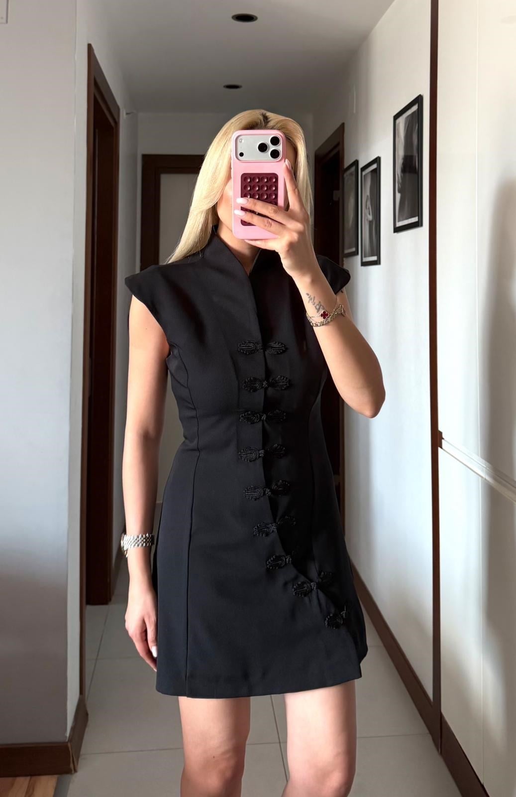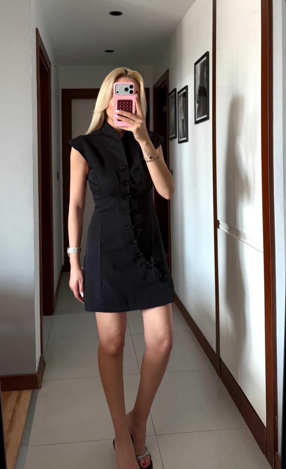 SİYAH NAPOLYON KISA ELBİSE (ST01867-SİYAH-S)