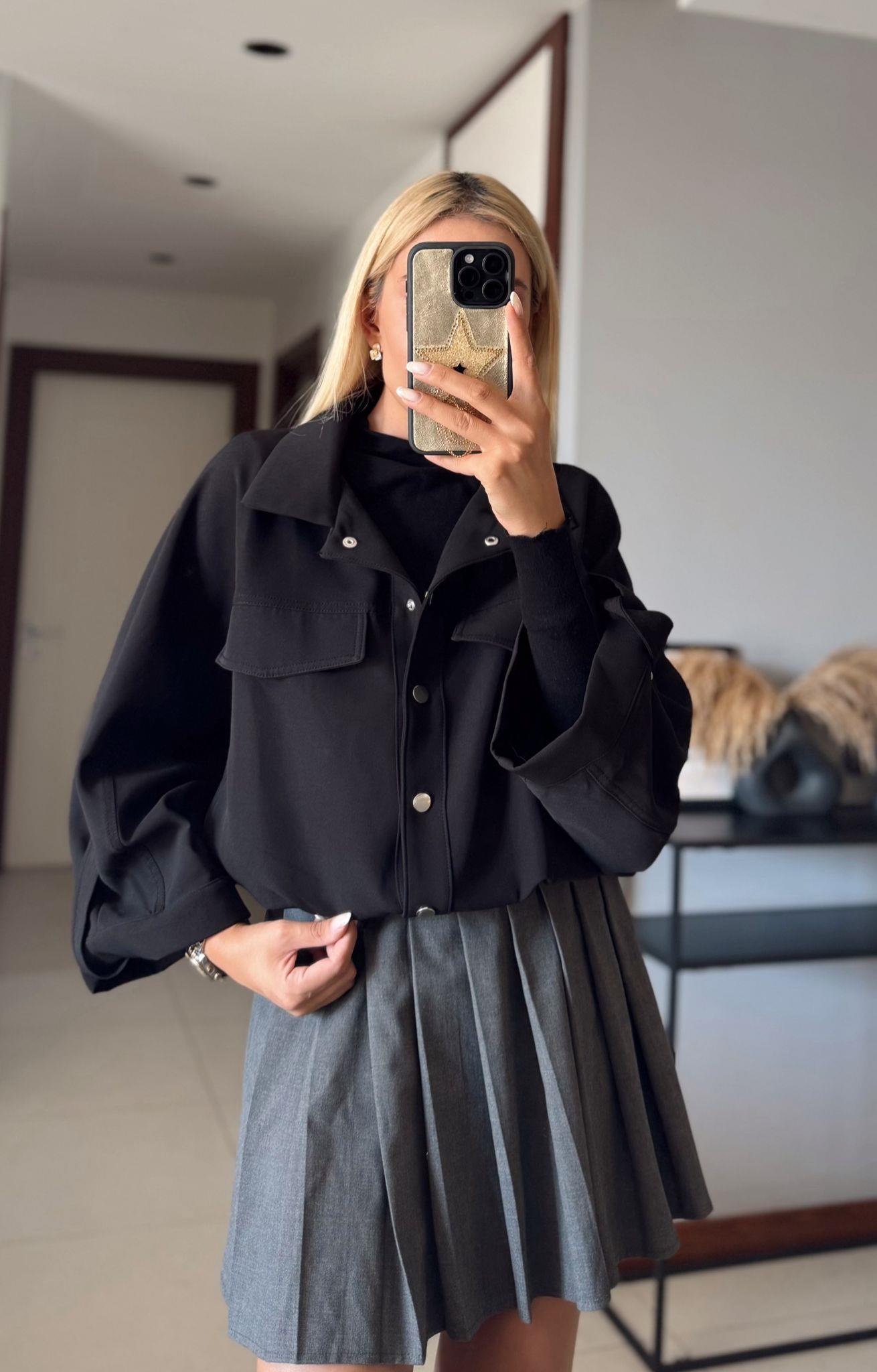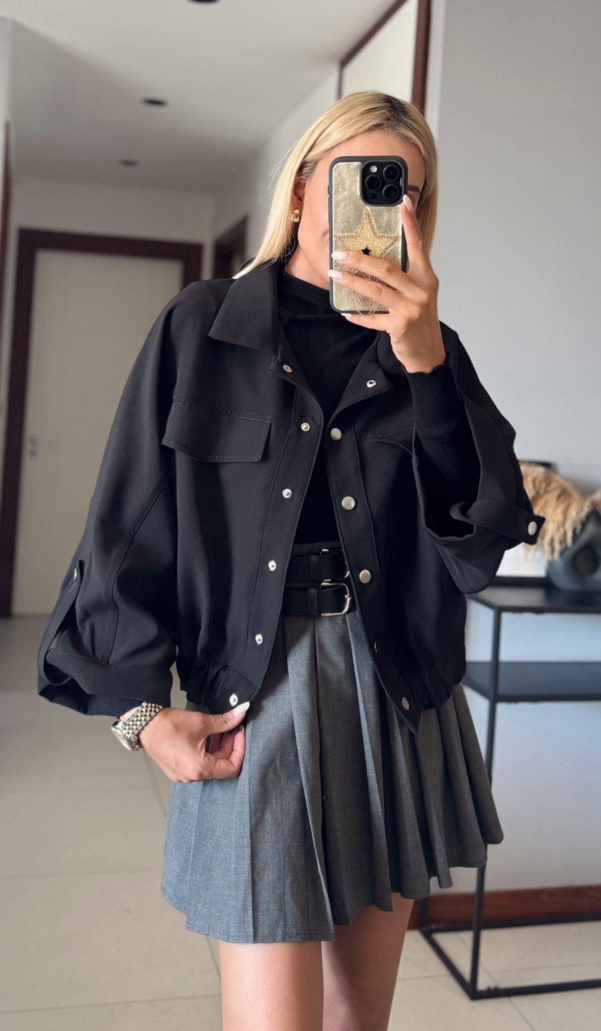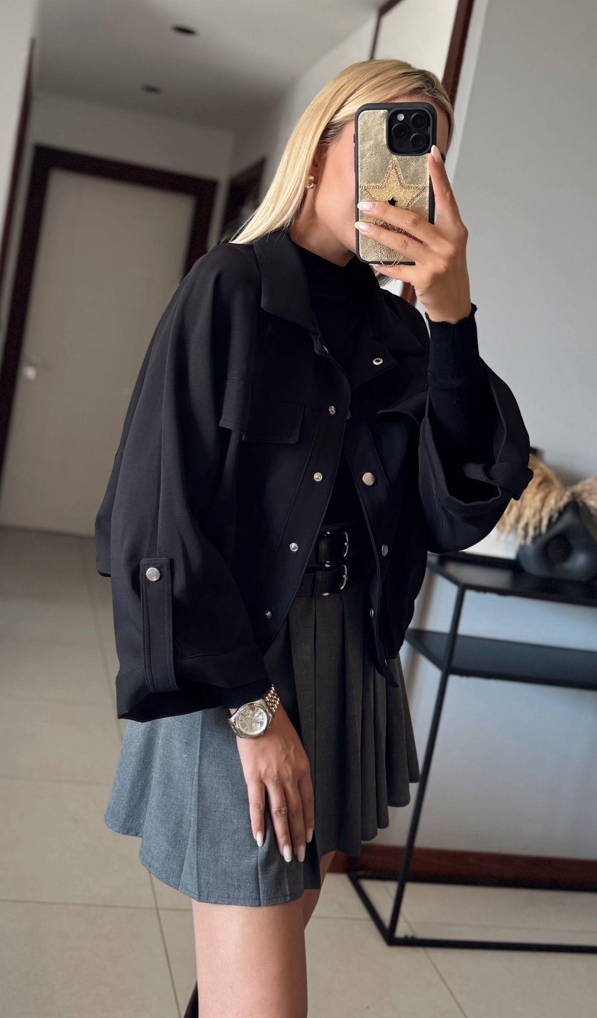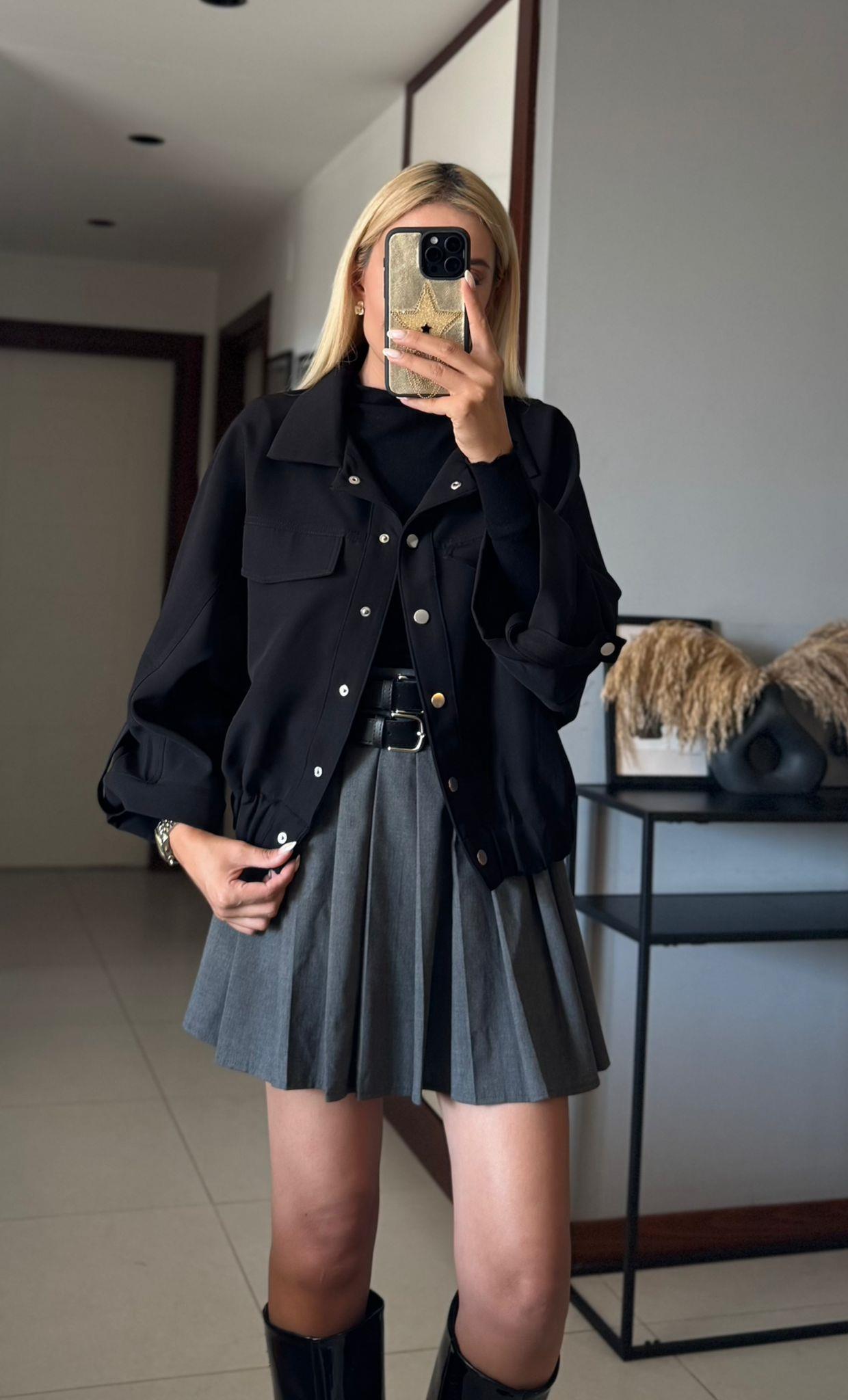 SİYAH ÖNÜ ÇITÇIT DETAYLI BOMBER CEKET (ST01465-SİYAH-STD)