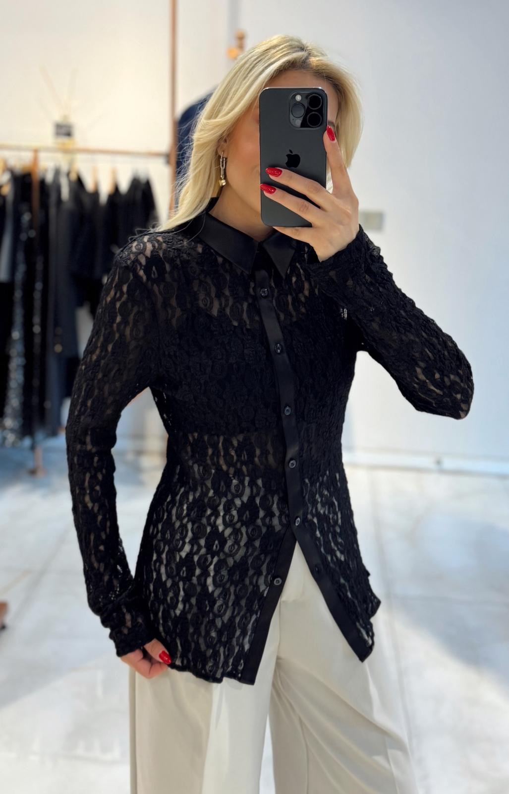 SİYAH SATEN GARNİLİ DANTEL GÖMLEK (ST01758-SİYAH-S)