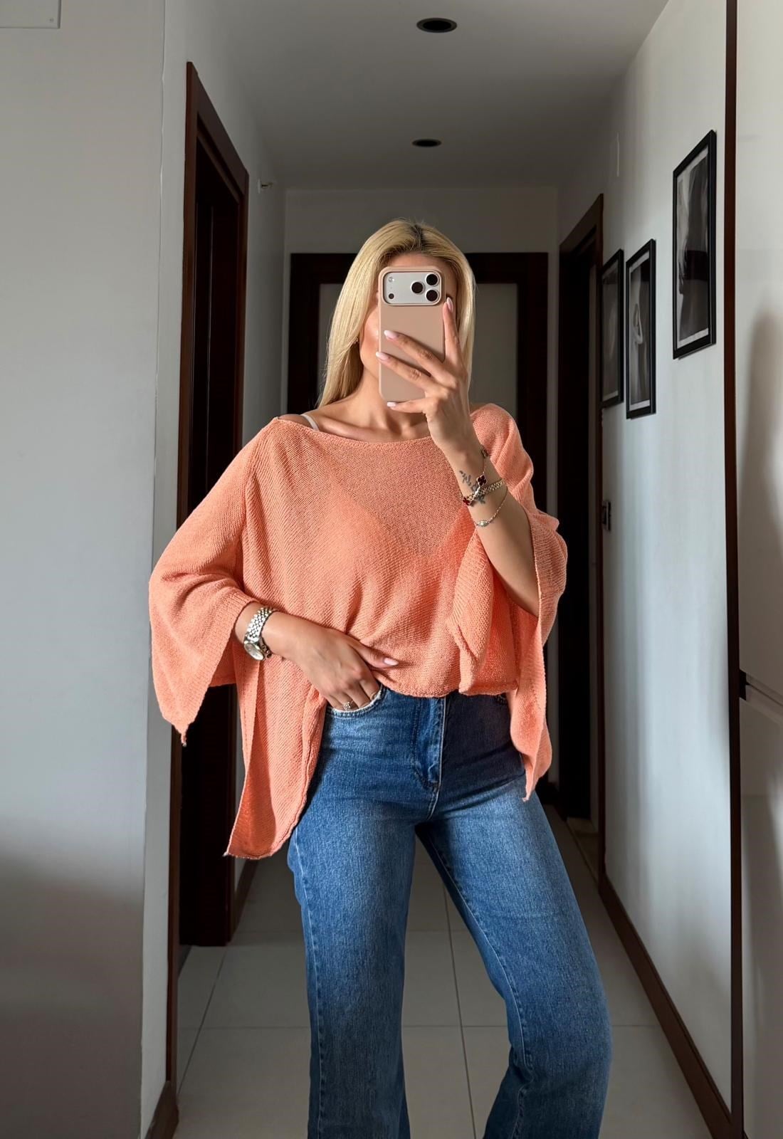 SOMON MERSERİZE YARASA KOL BLUZ (ST01881-SOMON-STD)